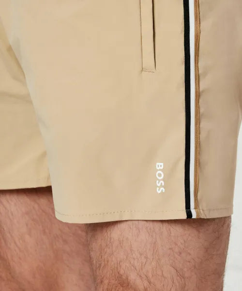 Fully lined swim shorts by BOSS, detailed with signature stripes and a logo.