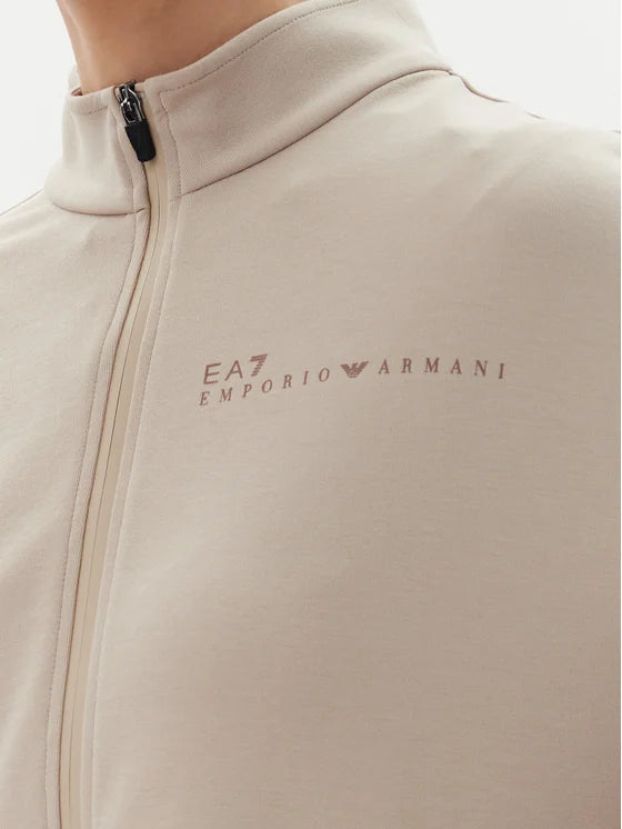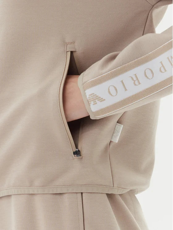 Sweatshirt in Natural VENTUS7 fabric that guarantees perfect thermo-regulation during your workouts. Thanks to the natural cotton fibres, they are extremely comfortable and cosy, creating the perfect clothing for workouts in the gym or outdoors. The style with an upright collar and full-zip fastening is distinguished by the logo tape that embellishes the sleeves, recalling other collection items.
