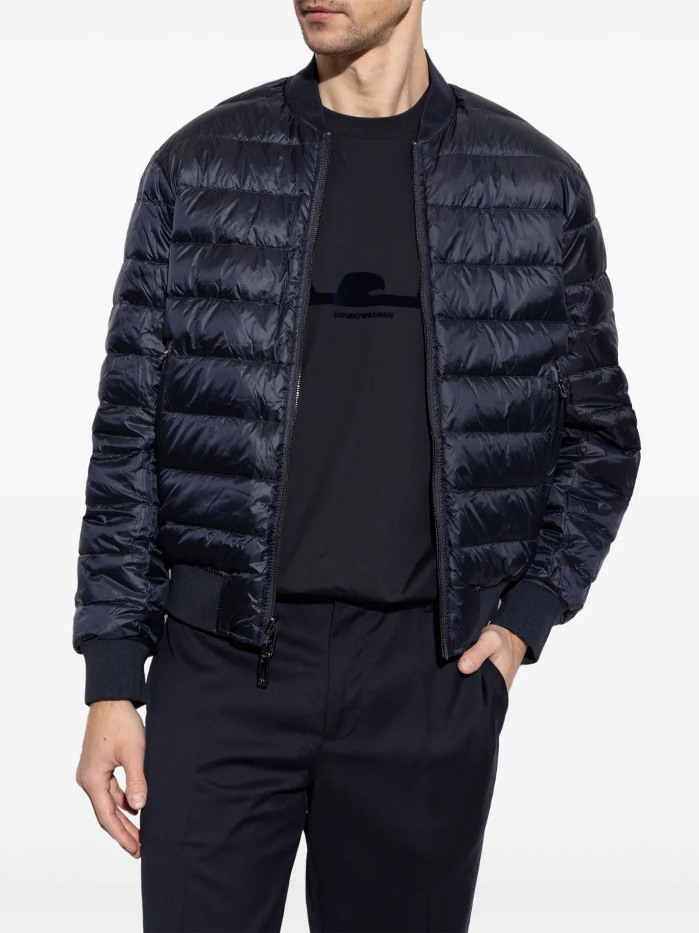 Regular price $850.00The essential, modern nature of this men's quilted jacket is enhanced by its genuine quilting and reversible design: the exterior features an all-over jacquard logo lettering, while the solid-coloured interior features a horizontal quilted motif.