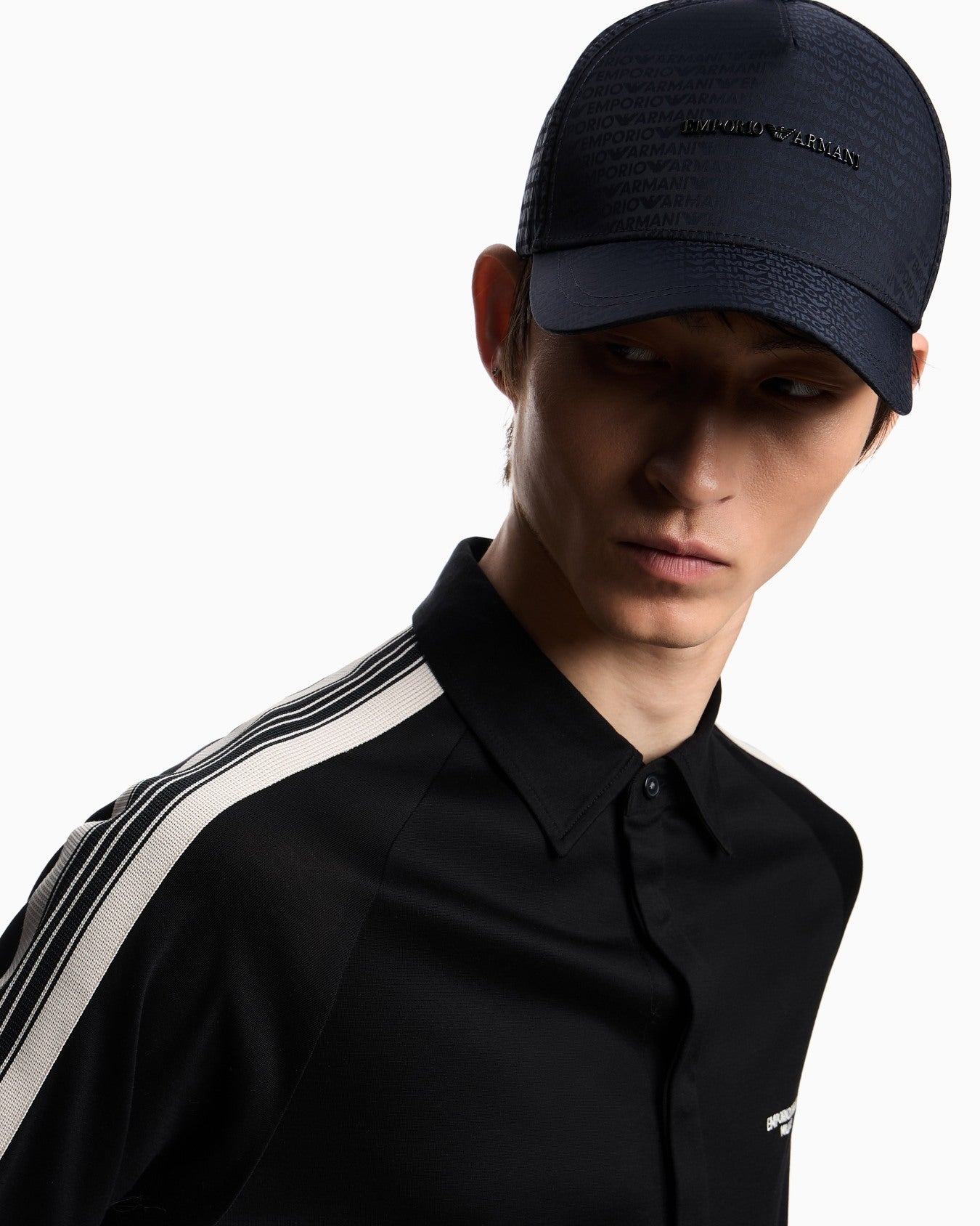 Regular price $260.00Elevate everyday looks with this Emporio Armani baseball cap, crafted from lightweight nylon with an all-over jacquard logo design. Finished with a sleek front logo plate, this modern accessory blends sporty style with refined branding. A rigid visor and adjustable Velcro strap ensure a comfortable, secure fit.