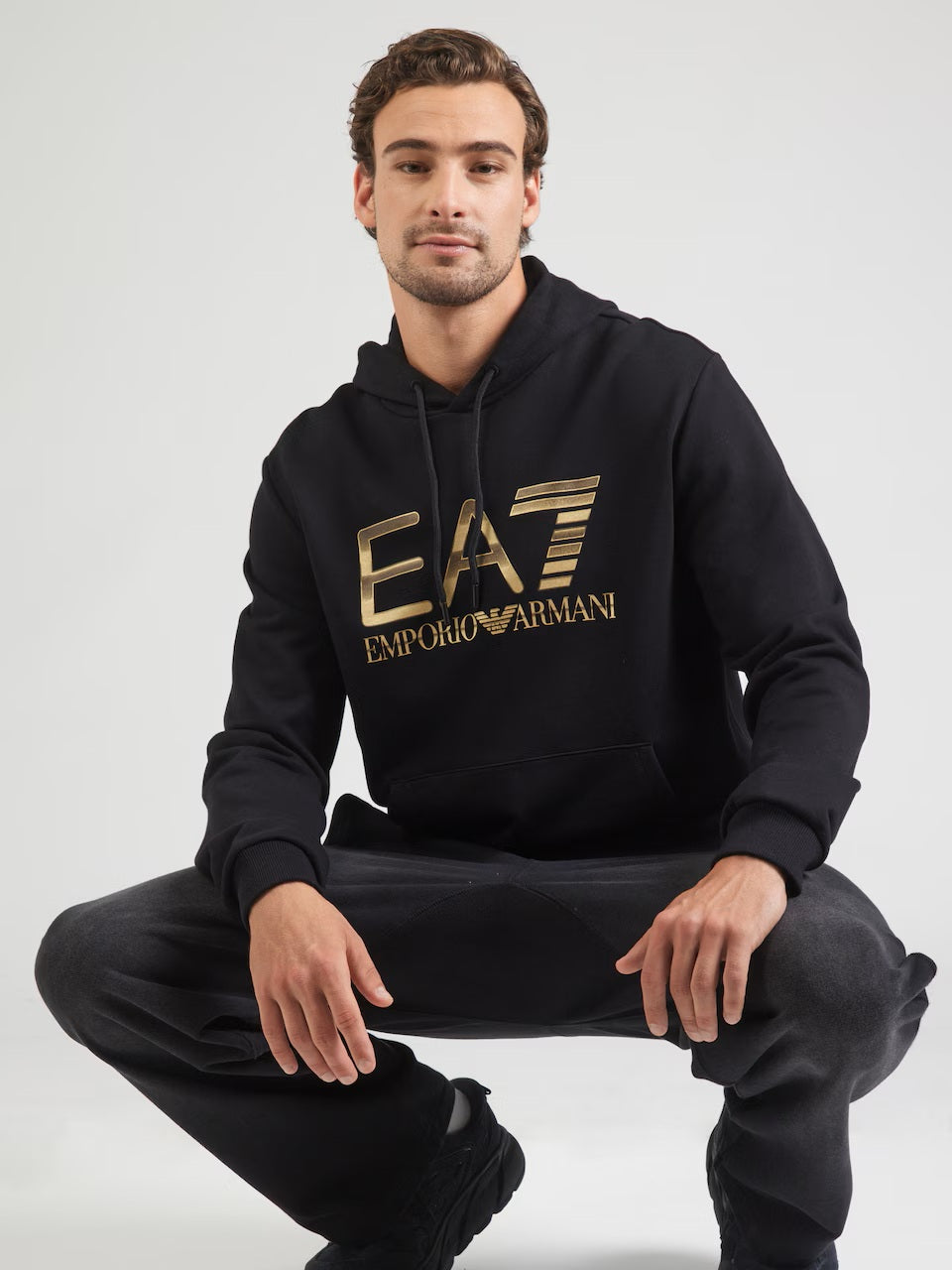 Regular price $230.00Upgrade your off-duty style with this EA7 Emporio Armani hoodie, crafted from soft cotton sweat fabric for all-day comfort. Designed in a classic silhouette, it features a bold gold EA7 logo print on the chest, adding a refined yet sporty edge.