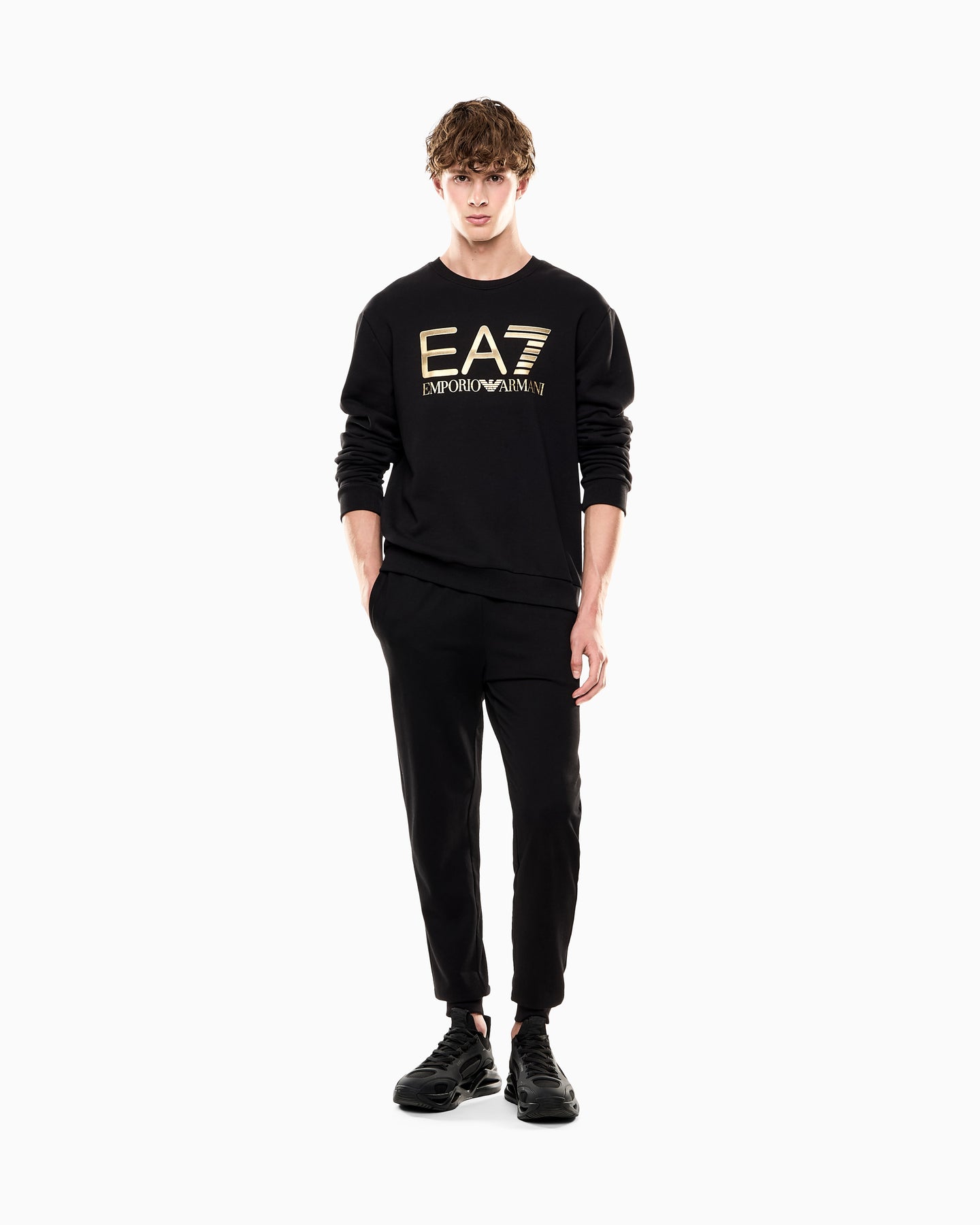 The standout feature is the oversized EA7 logo in a bold gold neon-effect print across the chest, giving it a modern, athletic edge. Designed for both relaxed days and off-duty styling, this piece blends comfort and statement branding effortlessly.