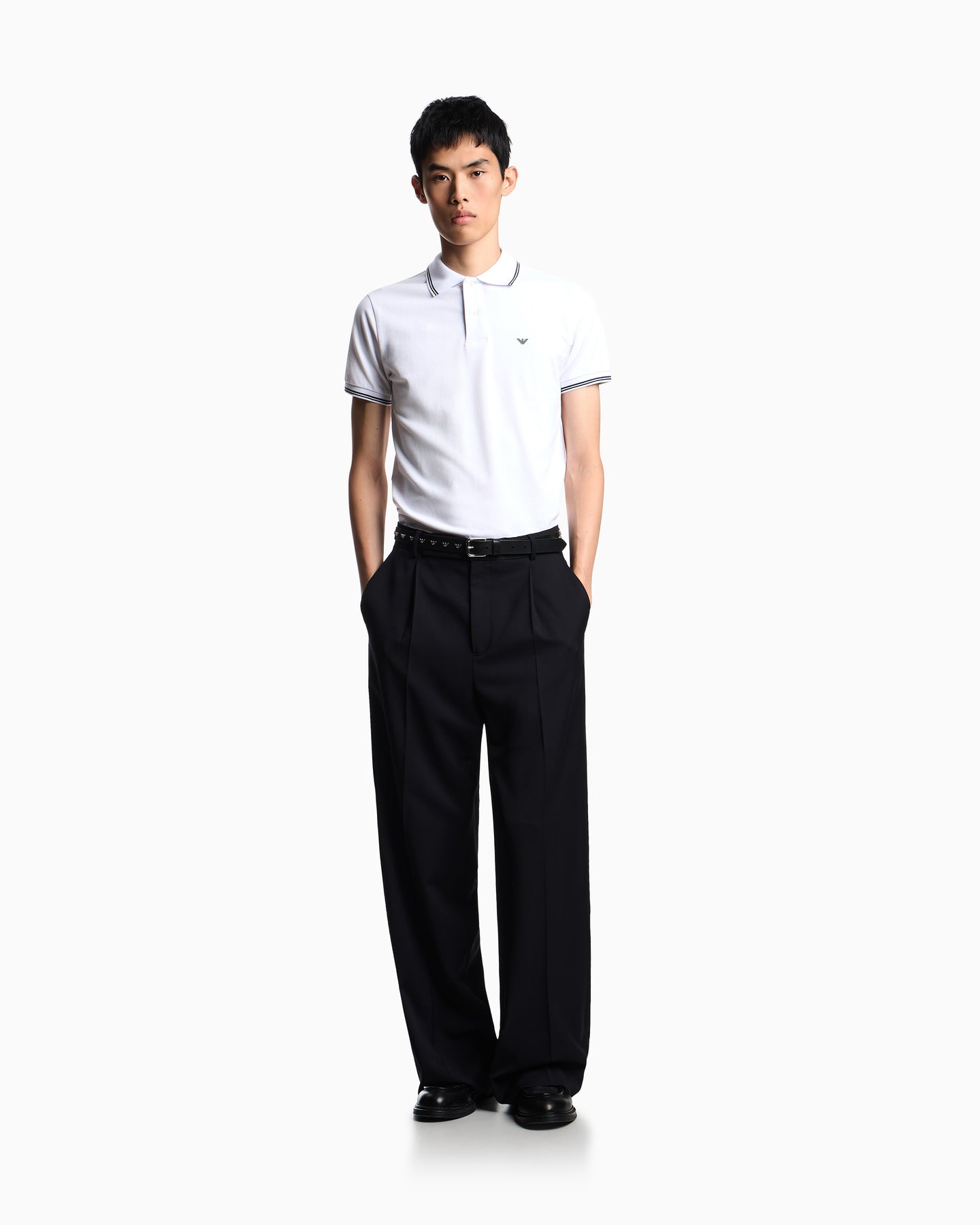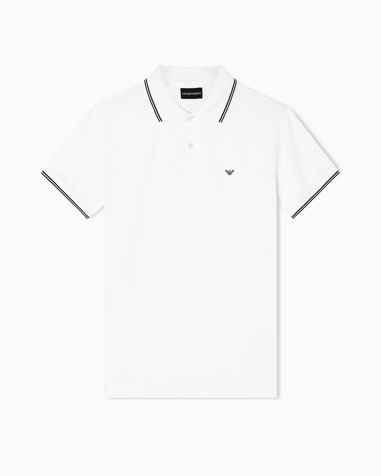 Regular price $230.00A refined take on a classic, this Emporio Armani polo shirt is crafted from a soft cotton-stretch blend for comfort and ease of movement. Designed in white with a tipped collar, it features a two-button placket and short sleeves, finished with subtle logo detailing for a clean, modern look. Ideal for smart-casual styling.