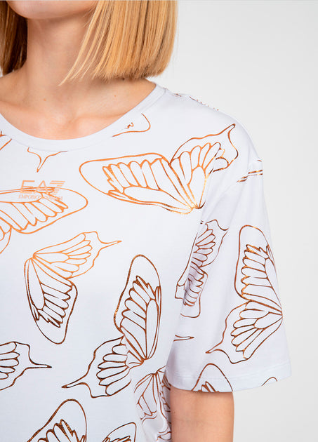 Regular price $130.00 Sale price $65.00 Save $65.00Stretch cotton and modal crew-neck T-shirt that feels exceptionally smooth and is comfortable to wear. The short-sleeved style is with gold sequins, recalling other creations from the Precious line. It is customised with a gold-coloured metal EA7 logo charm.