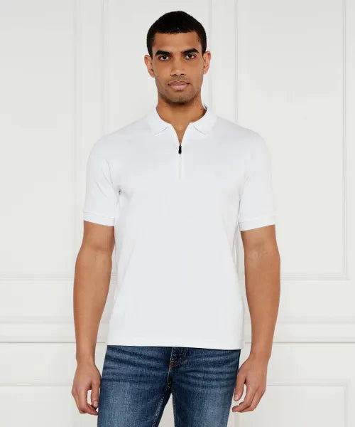 Designed in a slim fit for a modern silhouette, it features a classic polo collar, a button placket, and subtle BOSS branding that adds a refined touch. The crisp white colour makes it a versatile choice, easily paired with jeans, chinos, or shorts for a clean, contemporary look.