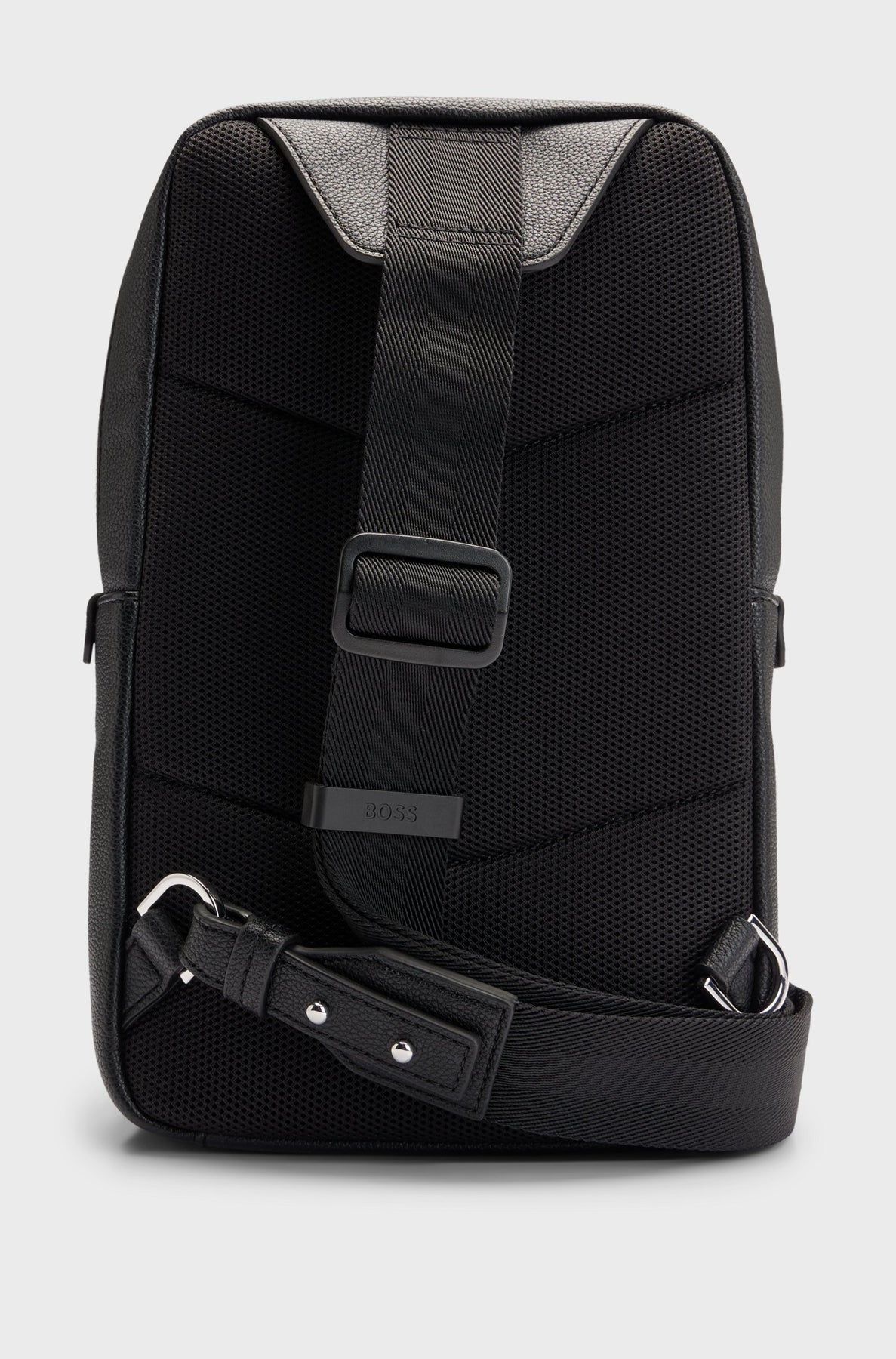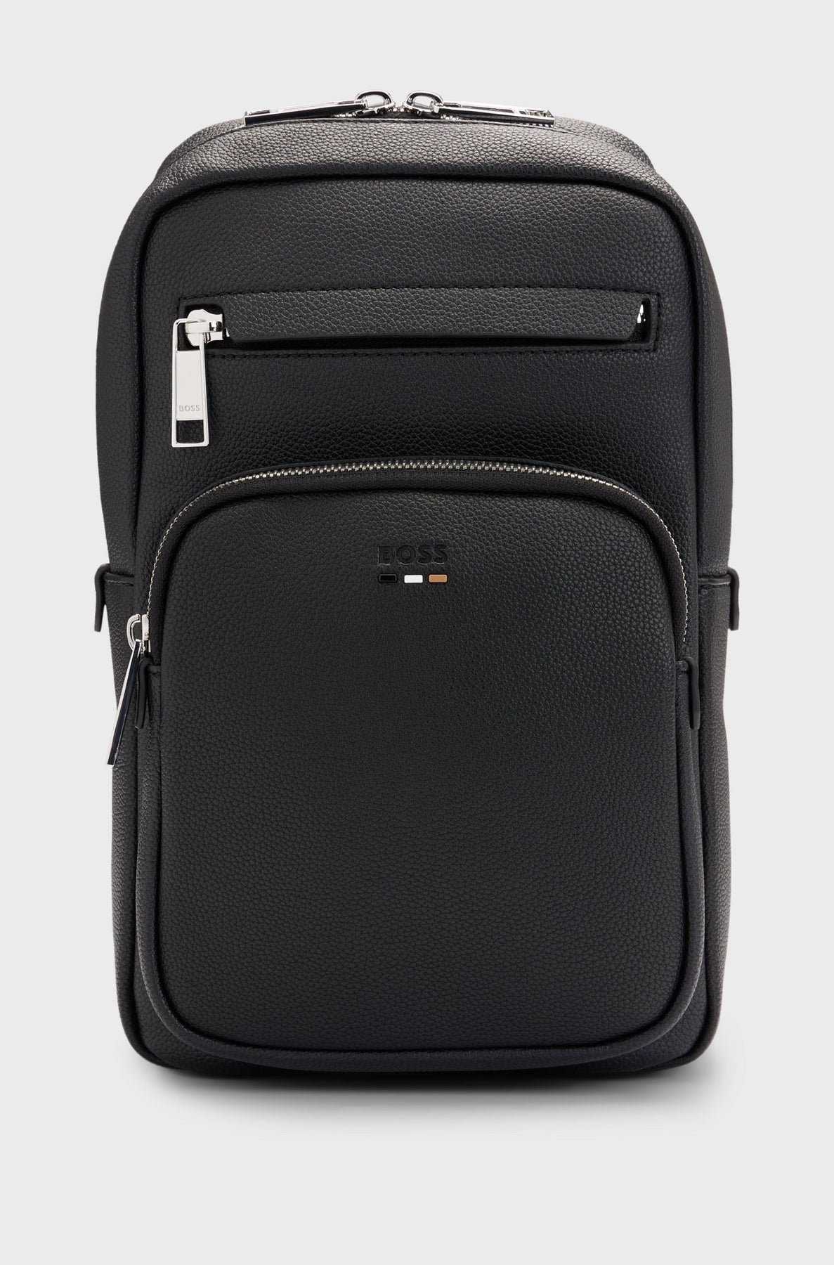 A versatile backpack by BOSS, featuring a signature stripe and logo detail. This accessory is crafted in synthetic coated fabric with a grained texture. Synthetic coated fabric, sometimes referred to as faux leather, is a fabric designed to resemble real leather, and/or display a matte, glossy, smooth, or textured, coated appearance. Measurements: 30 x 18 x 8.5cm