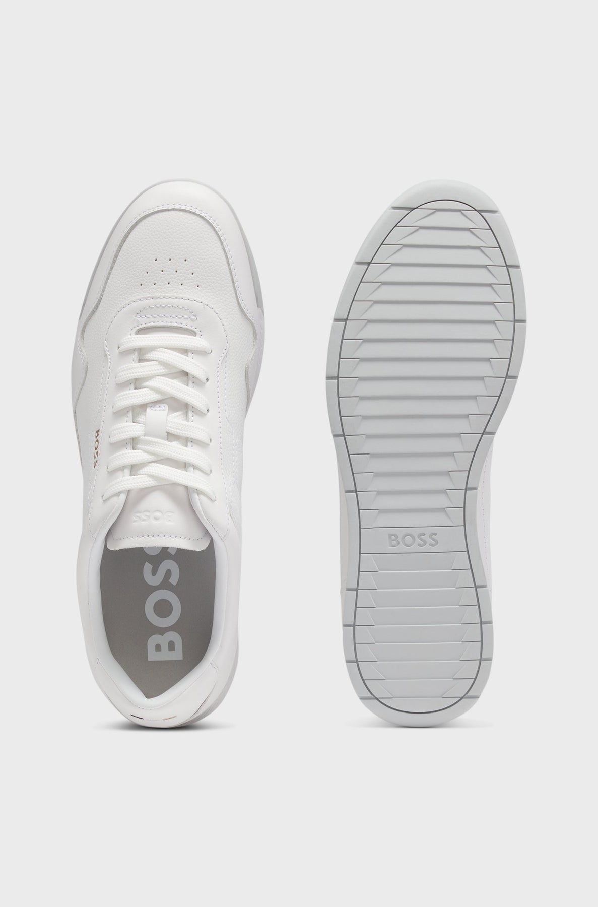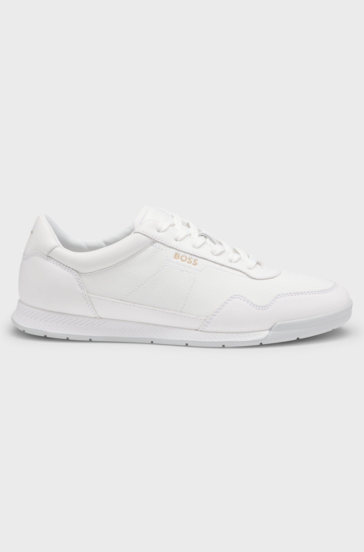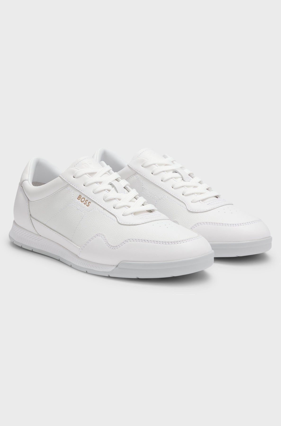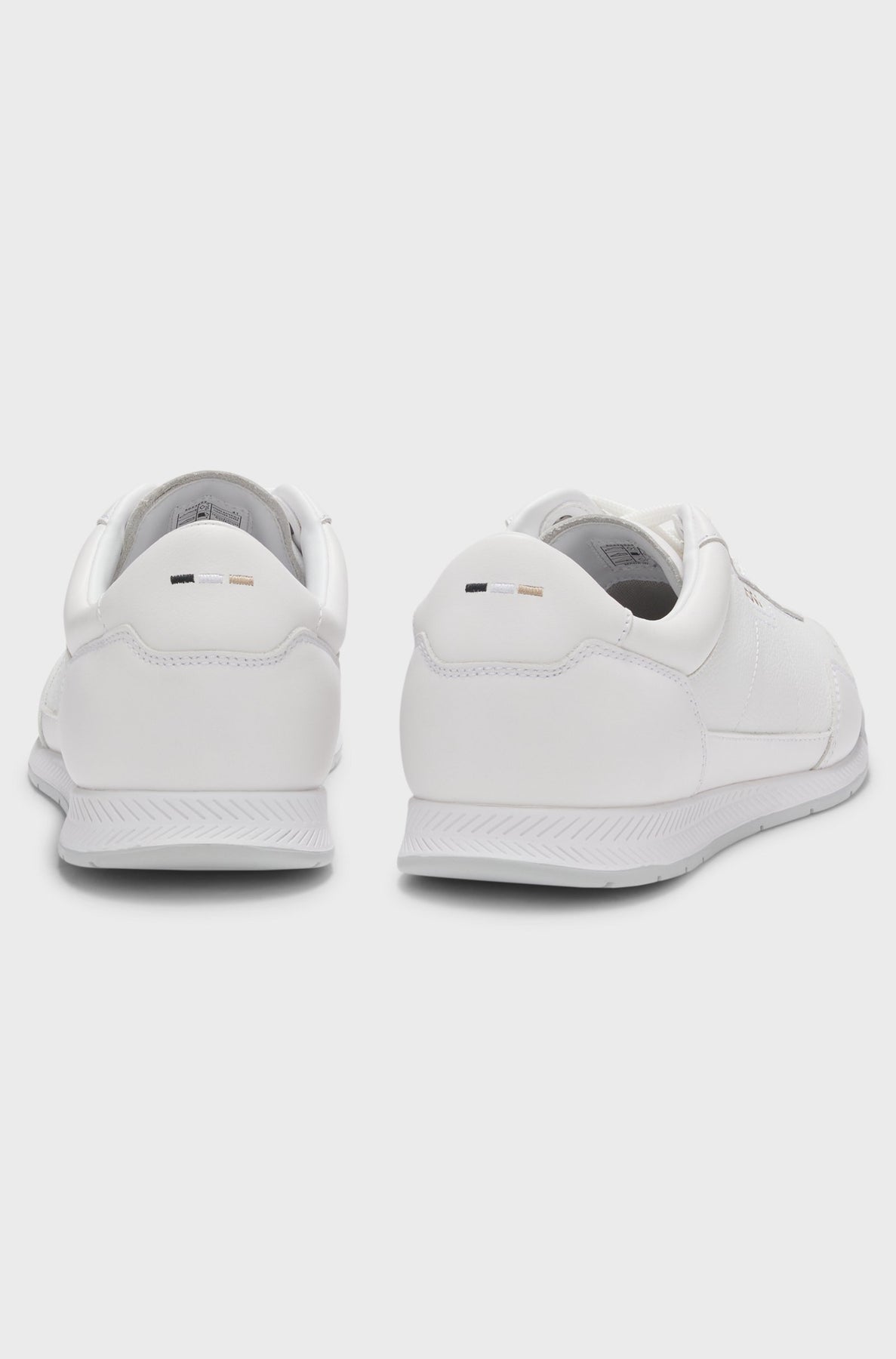 Sporty trainers in grained synthetic coated fabric offset by smooth trims by BOSS Menswear. Dress them up or down for events through the week. Synthetic coated fabric, sometimes referred to as faux leather, is a fabric designed to resemble real leather, and/or display a matte, glossy, smooth, or textured, coated appearance.