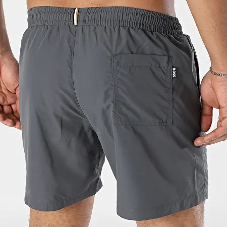 Hidden-drawcord swim shorts with full lining by BOSS. This straight-leg pair is printed with a logo on the left leg for signature appeal. This product is partly created with polyester.